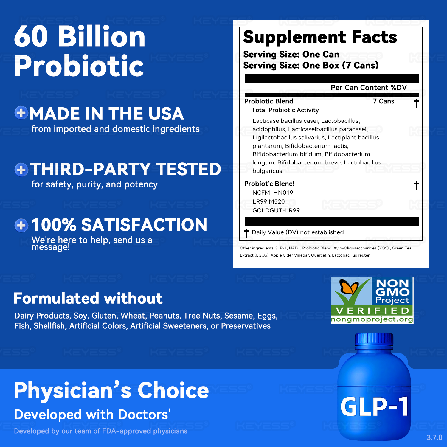 GLP-1 suppresses appetite, delays gastric emptying, and enhances insulin sensitivity, improving glucose and lipid metabolism at its source. The probiotic blend, paired with xylooligosaccharides, forms a synbiotic system that restores gut microbiota balance and promotes short-chain fatty acid production, thereby improving insulin response and lipid metabolism. Lactobacillus rhamnosus further regulates blood sugar and enhances immunity at the intestinal level, forming a synergistic metabolic control mechanism with GLP-1.